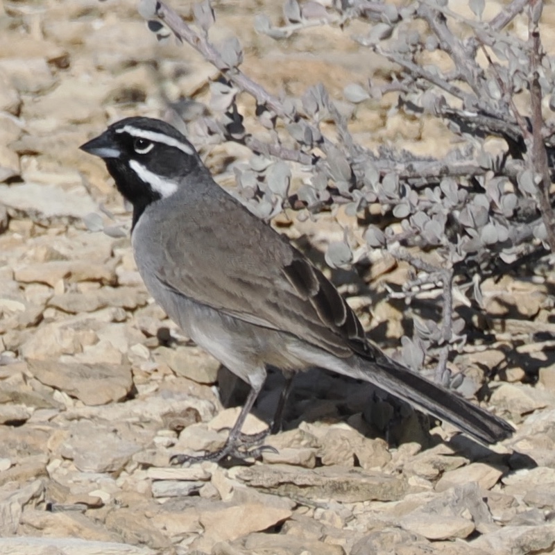 Total Bird species: 8 (2 unverified are a pair of Raven and some kind of hunting bird, maybe a Red-shouldered Hawk?). The Sandhill Cranes were just passing through but I think the rest live in the area. I’ve only seen the Finch and Gnatcatcher once though, so maybe they were also migrating. The Quail and Rock Wren live here in the winter (maybe year round) and the Black-throated Sparrow arrived in February and we’ve seen at least three of them.